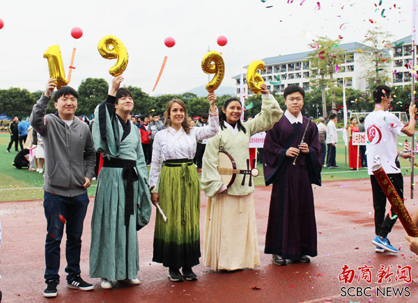 外国留学生为南商献礼(实习记者彭格格 摄)