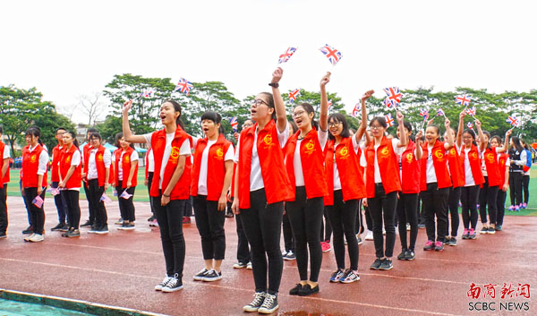 “师生齐心,其利断金。”高喊着口号,国际经济与金融学院的师生,借助扇子舞与队形变换,洋溢着学院活力与对南国20周年的感激。