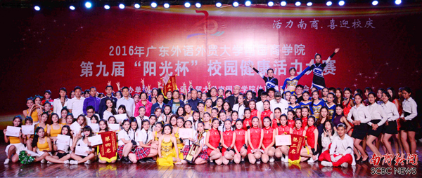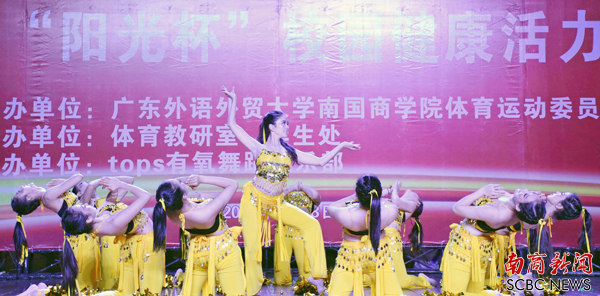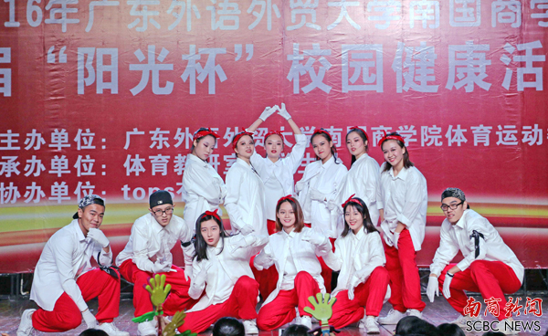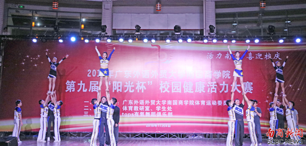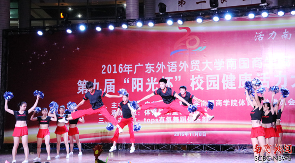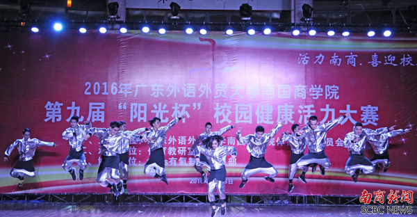 本网讯 近日,第九届“阳光杯”健康活力大赛于商业街舞台举行。本次比赛分自选啦啦操和集体街舞两大项目。国标舞俱乐部以一首热情洋溢的舞蹈“On the floor”拉开比赛帷幕,各学院分别派出solo舞蹈小分队互展实力,开场舞蹈秀引爆现场气氛。Tops校啦啦队巧妙融合舞蹈与啦啦操技巧,各种高难度动作带来紧张刺激的视觉冲击力;国标、羽毛球、高尔夫、乒乓球、网球、篮球、跆拳道、武术俱乐部等展示“看家本领”,献上了一场精彩的视听盛宴。(公共课教学部 梁晓莹 谢利科 黄曦)