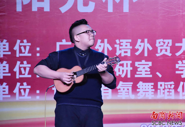校友叶家铭表演Ukulele指弹曲(实习记者林裕多 摄)
