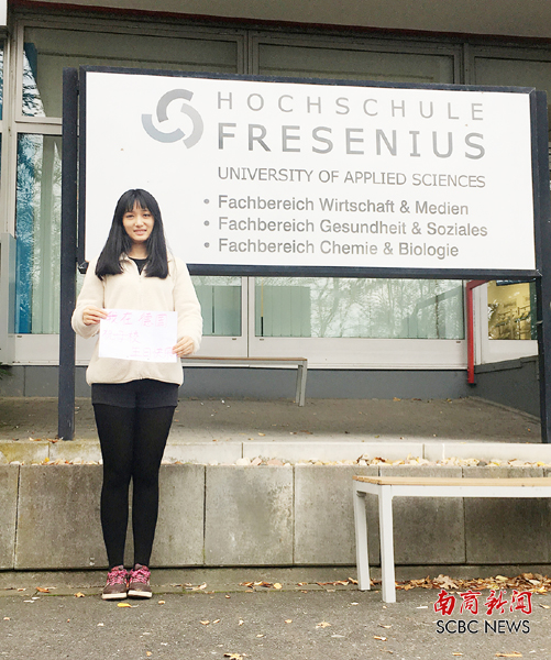 时值20周年校庆,虽处异国他乡,但身居海外的学子依然为母校的生日献上真挚的祝福。在法国雷恩商学院留学的2013级彭美妮说,祝南国生日快乐,越来越好,桃李满天下。2014级德语专业的邓婉珺现在德国慕尼黑应用语言大学留学,她惋叹自己身在德国,不能与小伙伴们一起献上对母校最真挚的祝福,“南国是我的母校,不管身处多远的地方都依然有一颗惦记她的心,祝母校生日快乐。”