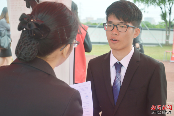 面试官认真倾听应聘者发言(黄沐瑶 摄)