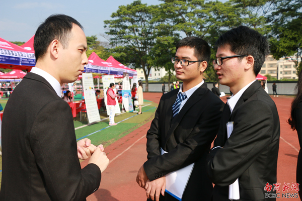 12月2日,广东省2017届毕业生供需见面会(从化地区)在我校举行。在招聘会的现场,有自信满满的轻松应聘、有抱住简历不放的犹豫、有小伙伴之间的相互鼓励、有应聘成功的喜悦,也有应聘不理想的失落……记者用镜头记录下了这些叫做“应聘”的表情。(刘阳)