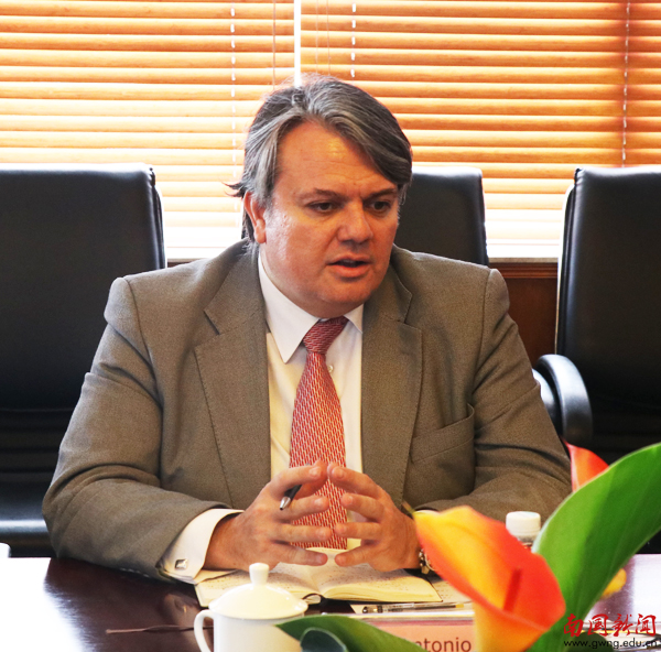 Juan Antonio Escarabajal也表示出合作意向,并通过视频展示了内布里哈大学的基本情况。据介绍,位于马德里的内布里哈大学是西班牙教育部批准的一所私立大学,位居该国十大著名私立高校之列,共设5所学院29个本科专业。该校也是西班牙对外西语教学师资培养的重要基地。