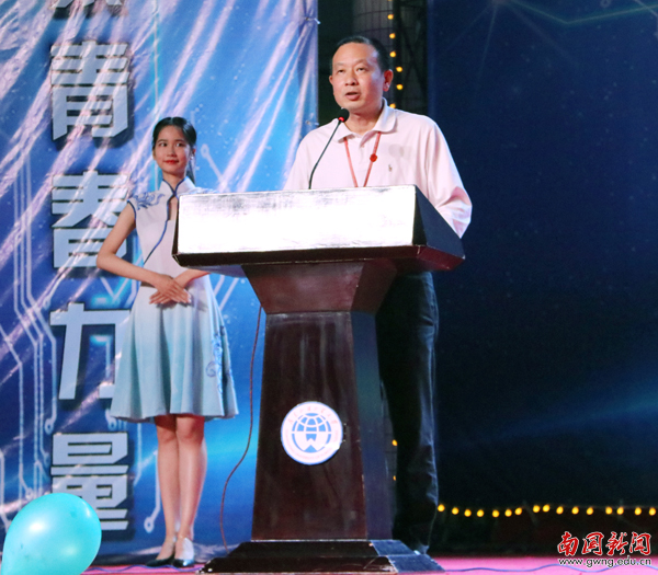 黎冬为晚会致辞。他提出大学生应积极创新,勇于实践。并希望科技创新的种子能在大学生的心中生根发芽。