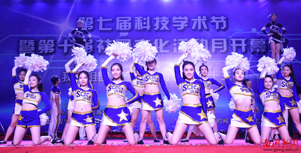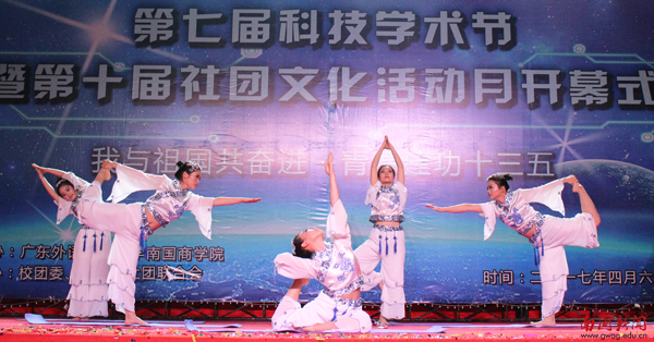 本网讯(记者 黄嘉文 蔡宛彤 张家雨)4月6日晚,以“我与祖国共奋进,青春建功‘十三五’”为主题的我校第七届科技节暨第十届社团文化活动月开幕式在文化广场举行。党委书记黎冬,副校长熊匡汉、王心洁等领导出席并与全校师生一同观看晚会。