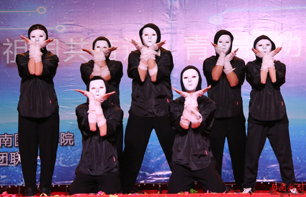 街舞协会表演的《Egypt party》别具一格,埃及艳后的出场,为整个表演笼罩了一层浓浓的异国风情。富有故事情节的街舞极为新颖,街舞少年头戴面具,为我们带来酷炫十足的机械舞表演,朋克女孩的街舞表演霸气侧漏。独特的视觉享受,激动人心。令现场的观众大呼过瘾。