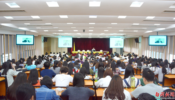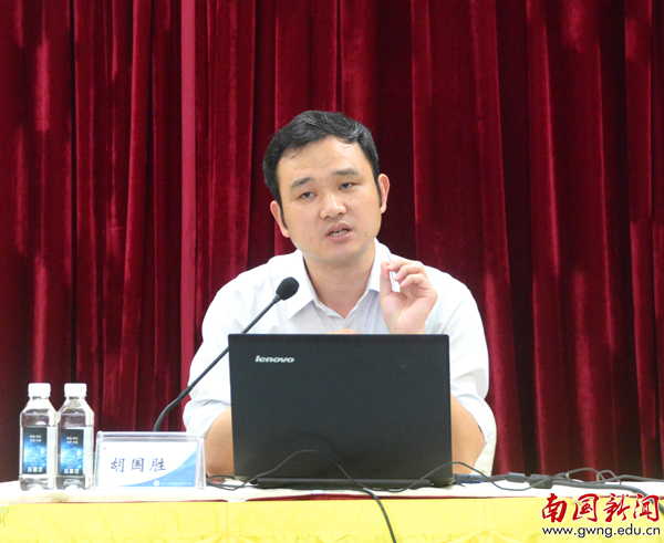 胡国胜从十八大以来以习近平同志为总书记的党中央提出并形成了全面建成小康社会、全面深化改革、全面依法治国、全面从严治党的战略布局讲起,从世情、国情、民情、党情的角度对当前时代新形势作了全面解读。他指出,新形势下,高校要从全局和战略的高度看待时代赋予思想政治工作的新要求,高校思想政治工作者要有所担当,在加强思想政治工作的同时,探索改革,谋划高校思政工作新方法。