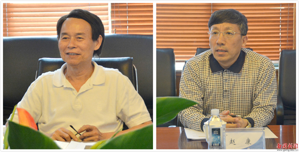 谭泽中(左)、赵康(右)先后在会议上讲话 (刘阳 摄)