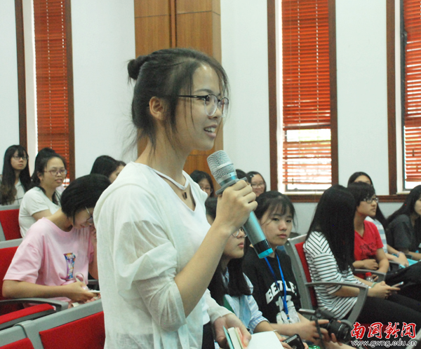 讲座接近尾声,我校师生就文学书籍的选择、是否应该阅读原版著作等问题,向宿久高提问。他耐心解答,详细阐述自己的看法,赢得阵阵掌声。(东语学院 曹妍 林绮佳 赵晶晶)