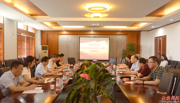 黎冬代表学校对广西大学行健文理学院的来访表示热烈欢迎,并简要介绍了我校的基本情况。黎冬指出 我校依托母体学校广外,紧紧围绕建设外语特色鲜明、学生实践能力突出的高水平民办大学的总体目标,应用“一体两翼”的人才培养模式,培养掌握一至两门外国语,能够直接参与国际合作与竞争的应用型、创新型人才。他表示,我校在办学特色与办学理念方面与广西大学行健文理学院有很多相似之处,希望通过本次座谈会,加深两校交流与合作,互相学习借鉴,共同进步。