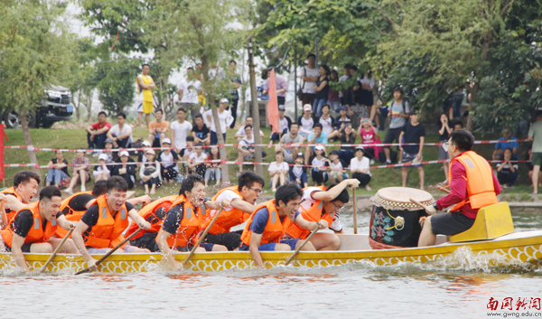 方小龙是来自美国的外教,决赛开幕前他早早拿着相机在湖畔等候,这是他第二次观看我校的赛龙舟。“每次看,我的心跳都会随着鼓点激烈跳动!”方小龙认为,团队合作精神是龙舟赛的关键,需要船上十二个人一条心,往一个目标努力。同时,他也提到中美文化在龙舟赛上的差异,美国人也组织龙舟赛,而且龙舟从外观上与中国差异不大,但美国人把划龙舟当做一种竞技;而中国的龙舟赛体现文化传承,让人在观赛中感受到对传统节日文化的热爱。“如果有机会,我一定要参加南国的龙舟比赛。”方小龙笑着说。