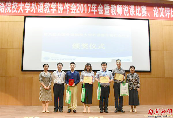 研讨会还组织了教师代表现场说课比赛。参赛教师自由选择授课内容,并在八分钟规定时间内展示教学内容、手段、课堂活动设计,充分展示个人的教学理念和教学风格。最终,我校廖环以《商务英语》课程为教学内容展开说课,并凭借清楚流畅的表达、生动稳健的授课风格获得一等奖。(大学英语教学部 供稿)