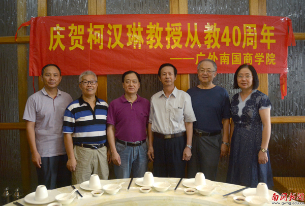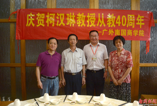 本网讯 6月13日,学校在教工饭堂隆重举行柯汉琳教授从教40周年庆贺晚宴。董事长丁小军、督学顾也力、副校长熊匡汉和中国语言文化学院教师代表欢聚一堂,共同庆贺。