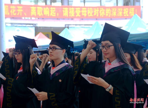 随后,在吴扬宇带领下,2017届毕业生全体起立,宣誓为中华复兴而努力奋斗。