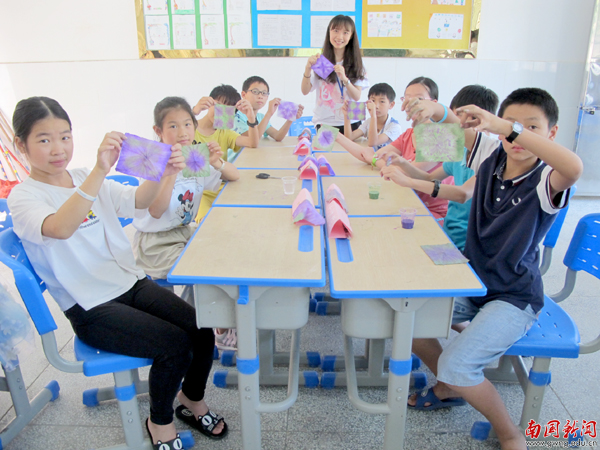 除了丰富多彩的专业课和文化课,我校志愿者还为学生设计了吹画、沙画、扎染、种植多肉植物、制作寿司等趣味课程,旨在拓宽学生的知识面,提高他们的动手能力。