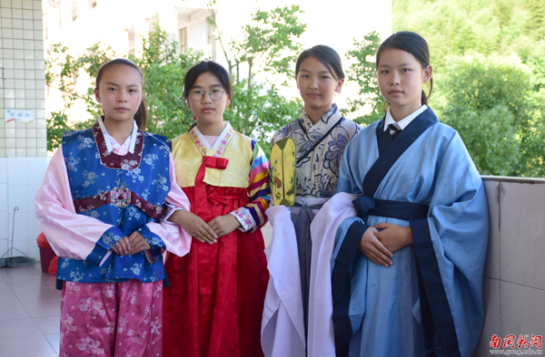 东方语言文化学院“东扬队”在庆云镇中心小学举办中外文化体验之旅——中外传统服装展示和体验活动,既有中阿日韩传统服装和礼仪展示,又让学生现场试穿体验,希望他们在了解中外文化的过程中发奋学习,为中华民族的伟大复兴而努力。中国语言文化学院“夏竹队”在黄竹小学开展以“丝路新中国,青春中国梦——亲国粹·扬国魂”为主题的中国传统文化节,分元宵区、茶馆、手工坊、学堂、武术区以及趣味项目五项,带领学生了解博大精深的中国传统文化。
