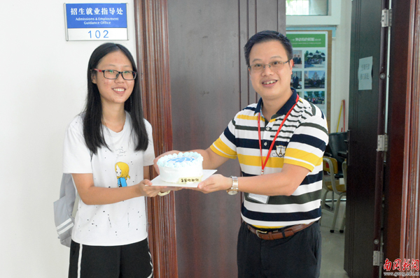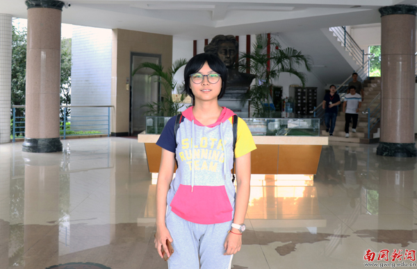 高考成绩排名理科第一名的陈晓恩同学,选择了法语专业,了解南国是通过亲戚的介绍,但是决定报考南国是被外语特色所吸引。许多老师和朋友在得知她要报考南国的时候,都劝她考虑清楚,但是陈晓恩尊重了自己内心的选择。“不管别人怎么想,怎么说,我仍然坚持自己所选。”陈晓恩告诉记者,学校的环境非常好,一进门就爱上了这里,更加坚定了自己的选择,希望大学四年好好学习,走好未来的每一步。
