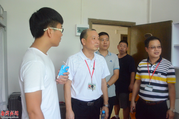 赖志立一行除了走访学生宿舍5栋和7栋,还特意走访了一间由外省籍学生组成的宿舍。赖志立亲切地与他们交谈,希望他们尽快适应广州的生活,师生交流其乐融融。