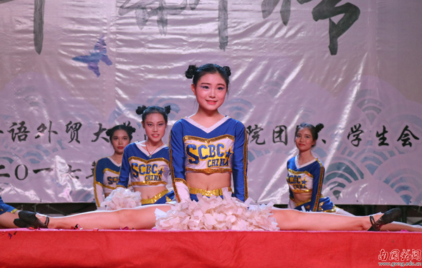 啦啦队每一次高难度的跳跃带动着观众的心跳(陈慕銮 摄)