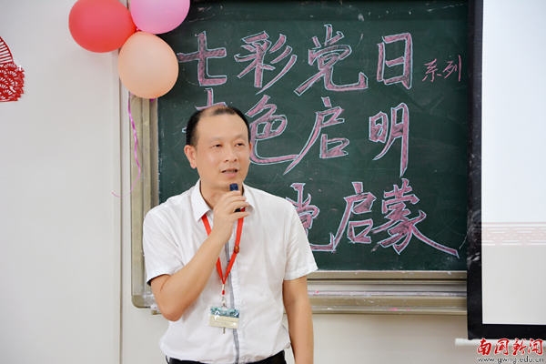 活动接近尾声,黎冬作总结发言。他首先讲述了学校党建书记项目“一总支一特色”的由来,肯定了管理学院七彩党日品牌活动所取得的优异成绩。其次,要求各位新生坚定理想信念,端正入党动机,仔细研读党章党规,加强对习近平治国理政新思想的学习,做到思想上入党;他勉励与会人员牢记全心全意为人民服务的宗旨,从身边小事做起,为广大师生服务,处处做表率,让宿舍、班级、校园更和谐,从行为上入党。