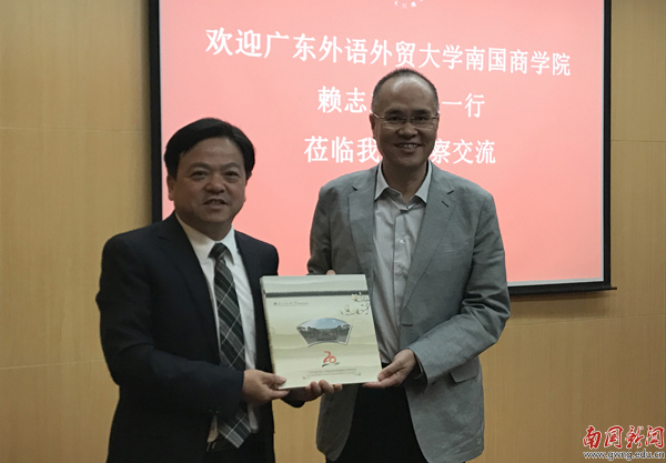 考察组参观浙江工商大学杭州商学院并向院长傅玉颖赠送纪念品
