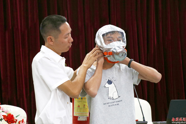 在系列讲座上,两位教官分别向师生介绍了高空缓降器、干粉灭火器、防烟毒面具、新型灭火装备“年捷灭火宝”和安全逃生锤的使用方法,传授了逃生的消防安全知识。他们都特别强调,烟雾是火灾现场的第一大杀手,一定要学会利用防烟毒面罩,增加逃生的几率。在了解了消防安全知识以外,更重要的是付诸行动,提高居安思危的防范意识,懂得使用与配备一些最基本的灭火工具。