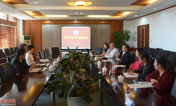 校友杨菊华向母校捐资助学(陈汝佳 摄)