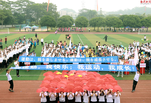 【编者按】 11月16日上午,雨过天晴,伴随着响亮的运动员进行曲,我校第二十一届校运会拉开序幕,各方阵运动员踏着整齐的步伐进场,为我们展现了英姿飒爽的的开幕式风采。下面就跟着记者的镜头来回顾一下吧。 (陈汝佳)