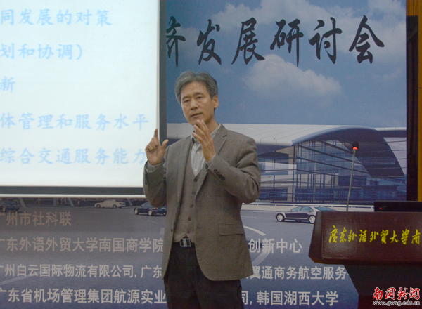 管理学院苏明老师围绕“空港经济支撑广州枢纽城市建设问题研究”这一主题发言。