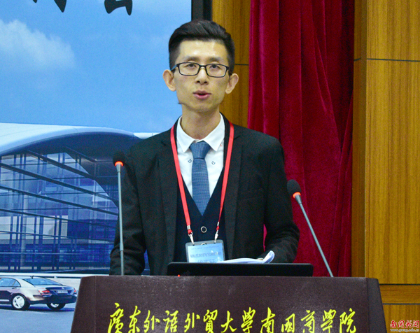 经济学院齐瑞福老师以十九大“贯彻新发展理念”的行动纲领为背景,“一带一路”的倡议为发展战略,围绕创新驱动发展对广州空港经济区建设作战略研究。他以“制度创新”“文化创新”“技术创新”“人才培养”“企业创新”“企业创业”等六大方面展开创新驱动发展战略的分析。他对胥东明所提的“做中转就是亏钱”这一观点表示赞同,认为“做中转是假命题,发展自己是真命题”。