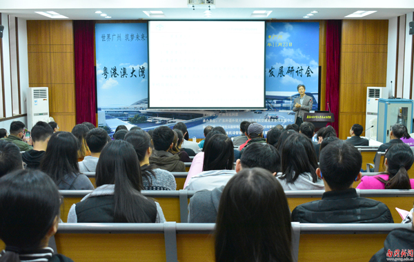 本网讯(记者 叶善恩 实习记者 黎倩怡 陈瑞 赵明月)11月23日下午,粤港澳大湾区建设背景下广州空港经济发展研讨会在F101学术报告厅召开。副校长杨励出席活动并致辞。