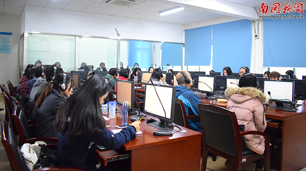 本网讯 11月24日下午,我校多语种同声传译实践活动在实验楼501举行。教务处处长周文贵,东方语言文化学院院长秦明吾、大学英语教学部主任张习群、英语语言文化学院副院长陈胜以及来自英文学院、东语学院、西语学院和大学英语教学部的师生们出席此次活动。参加此次同声传译实践活动的有来自9个语种(英语、西班牙语、德语、法语、葡萄牙语、俄语、日语、朝鲜语和阿拉伯语)11个外语专业的学生以及非外语专业的学生。