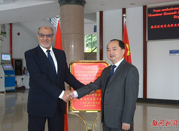 本网讯 11月28日,突尼斯共和国前总理哈马迪·杰巴里先生一行访问我校。我校董事长丁小军、常务副校长赖志立、副校长王心洁分别会见了来宾。