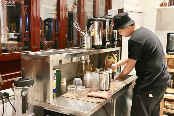 谈到茉莉茶舍开业一周的销售情况,店长杨炀以及搭档曾慧捷都觉得有些受宠若惊,因为在茶舍的第一天开业,他们表示“连门槛都快被踩烂”,同学们的热情超乎他们意料。茶舍能在开业之初顺利地打响“第一炮”,背后少不了的是整个团队的付出。