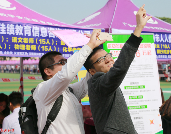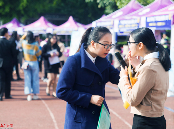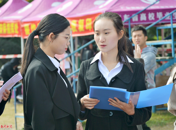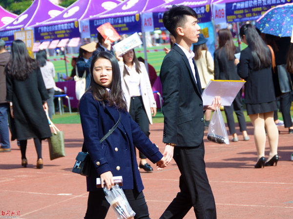 牵手一起参加招聘(陈汝佳 摄)