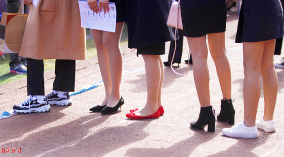 不同的鞋子,一样的求职选择(刘阳 摄)