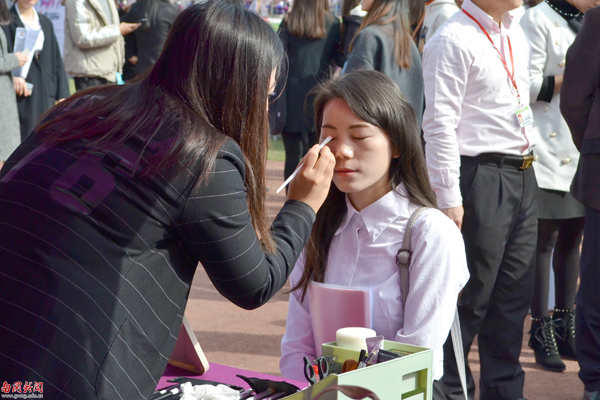磨刀不误砍柴工,化个妆再去面试(梁晓明 摄)