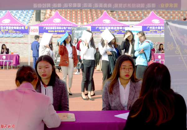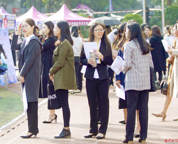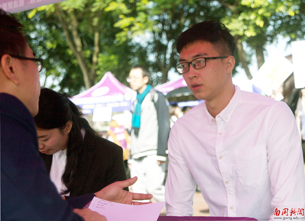 赵春霞告诉记者,她发现许多求职者在面试过程中对自己未来的职业发展方向并不明确。来自广东财经大学华商学院金融工程的陈同学,已是第三次参加校园招聘会,她结合自身能力与家人意见,选择了“广撒网”的方式海投简历,但目前还没有找到心仪的工作。
