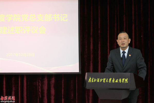 在述职评议会现场,各学院党总支书记围绕《中共广东省教育工委关于做好2017年度高校基层党建述职评议考核工作的通知》(粤教工委组函〔2017〕62号)的文件要求,通过PPT形式对学院学习贯彻党的十九大精神情况,履职党建责任情况、推进基层党建工作情况、开展思想政治工作情况及存在问题和应对措施进行了述职。各学院负责人,校党委职能部门负责人,各党总支部书记、委员,直属党支部书记,基层党支部书记代表,省党代会代表,省委教育工委党代会代表,各级人大代表,民主党派代表、教师代表、学生代表等参与了2017年度各学院党总支书记述职评议会。