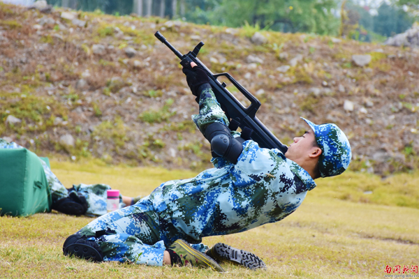 持枪的手丝毫不敢懈怠(林裕多 摄)