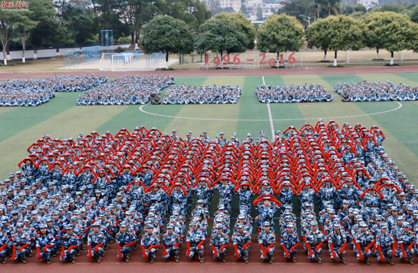 提拔的身姿,统一的步伐,一营尖刀队一出场即刻显示出傲人的气势。队员在教官的指挥下手持匕首,在震耳欲聋的呐喊声映衬下表演了十二式匕首操。慑人的气势与干练明快的招式,无一不在彰显着南国学子的热血风采。