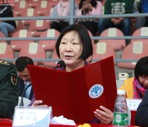 大会结束,王心洁向承训部队赠送锦旗,这也标志着2017年新生军训正式圆满结束。