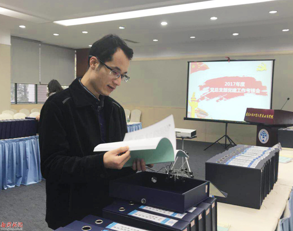 本网讯 为深入学习贯彻党的十九大精神,按照党中央全面从严治党的要求,有效推进“两学一做”制度化常态化,1月4日,我校党委邀请校外党建专家对我校2017年度各党总支部工作进行考核。考核工作在C202多功能会议厅进行,各党总支部依次对所在单位党建工作进行汇报并接受专家组提问,同时由专家组进行现场材料考核。