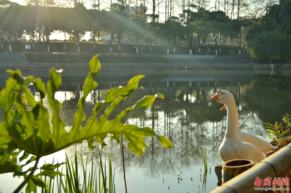 小白鹅也来欣赏这美丽春景(陈锡权 摄)