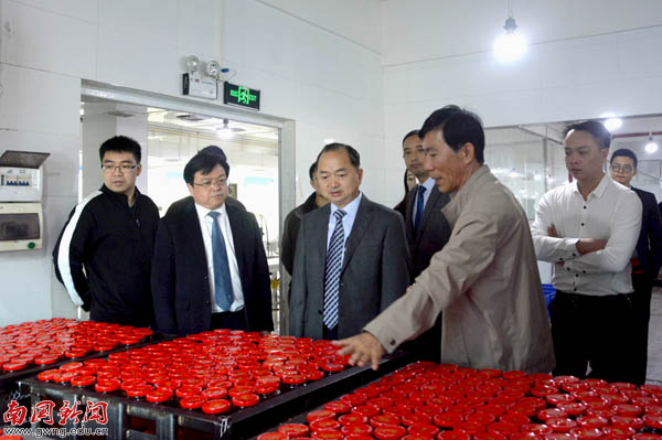 丁小军一行人走访参观了校友冯高峰所任职的广东(阳江)阳帆食品有限公司。他们参观了该公司的生产线,对公司产品进行了详细了解,对企业下一步的发展进行了交流。在得知企业顺应发展形势,不断开拓新产品,采取电商扩大营销的做法时丁小军表示了高度赞赏,同时鼓励冯高峰要不断创新,把企业进一步做好。