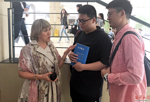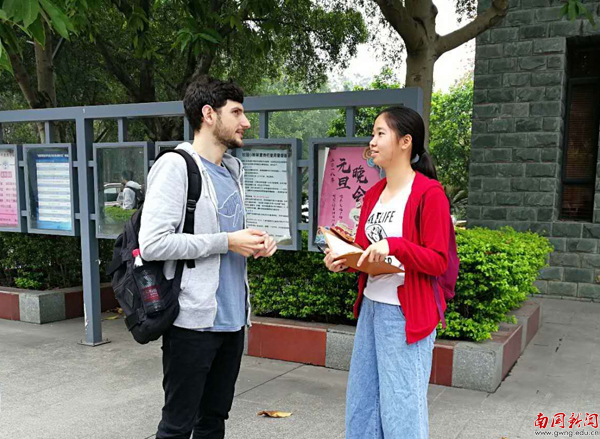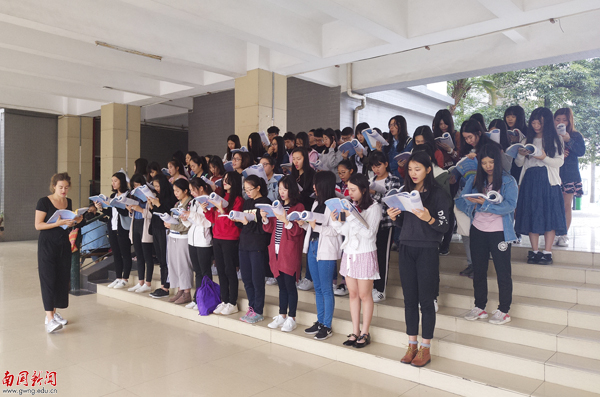 花香鸟鸣与琅琅书声相映成趣,每天的户外晨读一结束,学生们都会纷纷围聚在外教周围,将所学到的语言知识运用起来,与外教们交换每天的心情与感受,师生感情也由此升温。同学们表示,虽然学习一门全新的语言过程很艰难,但是每天进步一点点并与外教交流沟通使大家非常有成就感,每次外教幽默的回答都使大家对语言的学习产生浓厚的兴趣,晨读后与外教的交谈也变成了同学们每天最期待的环节。 (西语学院 王玥)