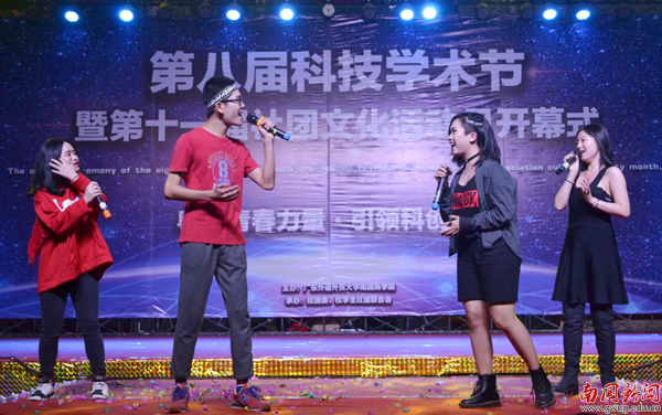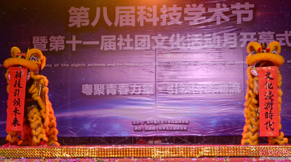 本网讯(记者 陈敏仪 余泽钿 陈瑞)4月12日晚,第八届科技学术节暨第十一届社团文化活动月在文化广场拉开帷幕。党委书记、副校长黎冬,副校长熊匡汉、王心洁等校领导出开幕式并与全校师生一同观看了开幕式。