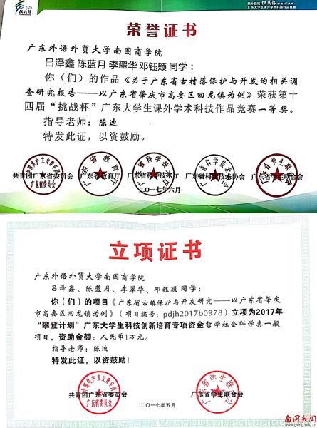 吕泽鑫通过自己的不断努力,以学业能力良好、创新创业能力突出、志愿服务积极、校内工作优秀等全面发展获得“2017年广东大学生年度人物”全面发展型提名奖,为我校学子树立了榜样,发挥了先进模范的示范引领作用。