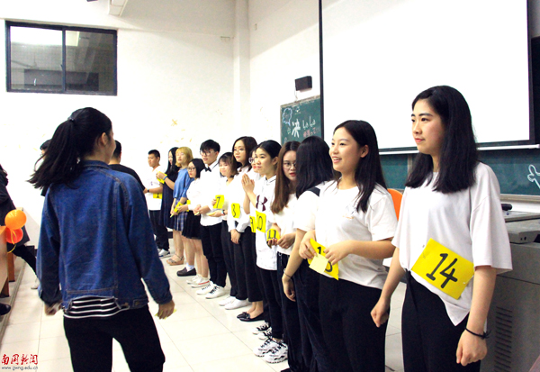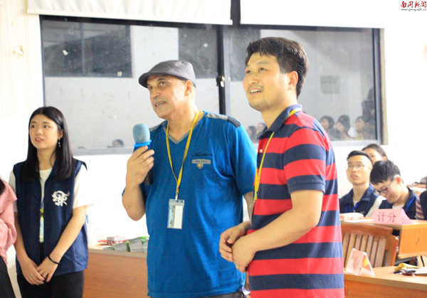 比赛穿插了轻松的游戏环节,师生互动,其乐融融。在传递气球游戏中,气球传到了阿语系外籍教授奈伊姆、陈超业老师手中以及两位选手手上。师生上台接受“惩罚”,他们要为电视剧《爱情公寓》配音。奈伊姆还用阿语即兴表演配音,趣味十足,引发哄堂大笑。